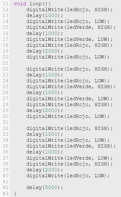 Para ilustrar la utilidad de un FOR, vamos a crear un diseño en el que tendremos 2 LEDs, uno rojo y otro verde. El objetivo es que ambos LEDs realicen una pequeña coreografía: