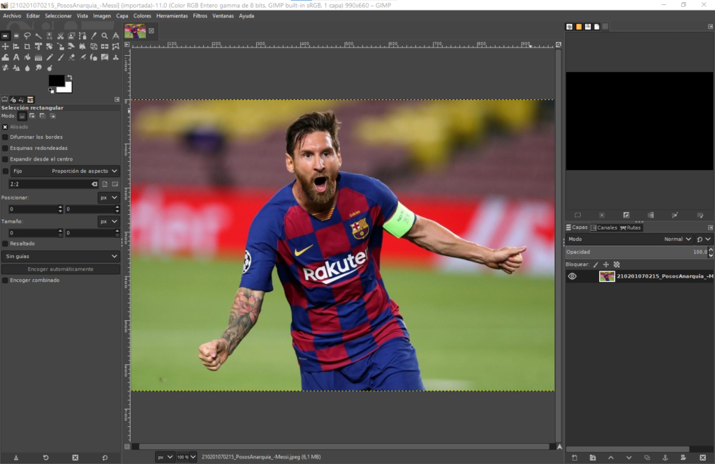 Ahora vamos a seleccionar la herramienta de selección libre que puedes encontrar en Herramientas > Herramientas de selección > Selección libre. El funcionamiento de esta herramienta es muy sencillo: debes ir pasándola por el borde de lo que quieres seleccionar y vas haciendo clic cada poco, hasta que hayas seleccionado toda la parte de la imagen que quieras.