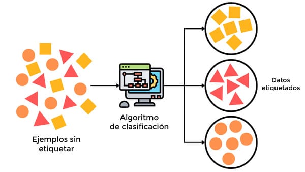 - Aprendizaje no supervisado: el sistema recibe ejemplos sin etiquetas y debe encontrar diferencias para crear sus propias categorías.