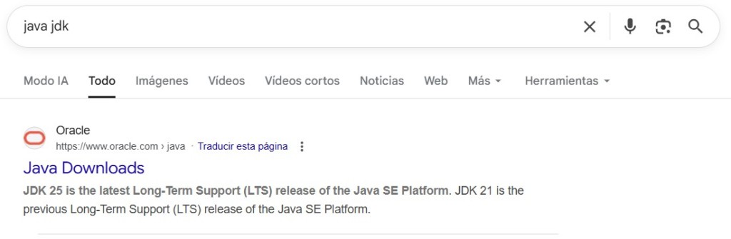 Buscamos “java jdk” en Google y pinchamos en este primer resultado.