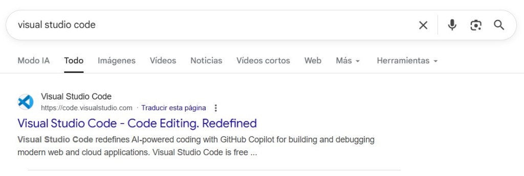 Ya tenemos todo lo necesario para que Java esté presente en nuestro ordenador. Ahora necesitamos un programa que nos permita escribir código Java y ver el resultado de ejecutarlo, para ello usaremos un IDE. Un IDE (siglas de Integrated Development Environment, o Entorno de Desarrollo Integrado) es un programa que reúne en un mismo lugar todas las herramientas necesarias para programar de forma cómoda y eficiente. Nostros usaremos uno muy popular llamado Visual Studio Code.