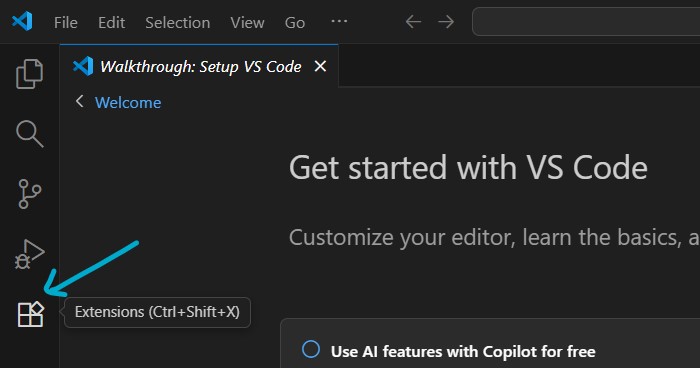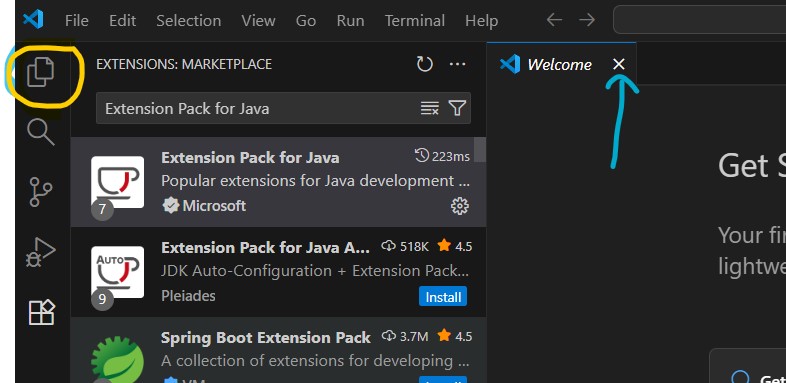 Para configurar el IDE lo primero que vamos a hacer es instalar una extensión que nos facilite un poco más la programación con Java. Pulsamos en este icono: