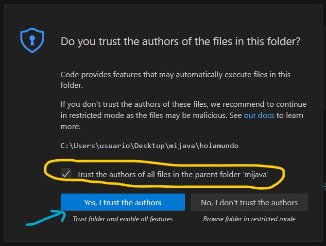 Nos va a salir una pregunta relacionada con la seguridad del proyecto. Debemos marcar esta opción y pulsar este botón: