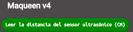 Para programar el sensor de ultrasonidos necesitamos leer la distancia que el sensor está detectando. Eso lo hacemos usando este bloque: