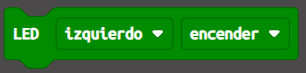 Además, en esta práctica también usaremos por primera vez esos dos LED rojos que vemos en la parte frontal. Para encenderlos y apagarlos, encontrarás un bloque muy sencillo de entender en el panel de bloques de Maqueen en Makecode: