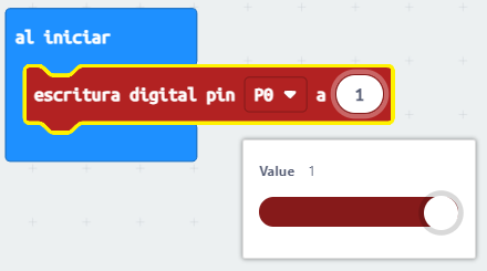 Cada canal de color puede variar entre 0 y 255, pero nuestro bloque de escritura digital -el que conocíamos de la práctica anterior-, sólo nos permite meter dos valores 0 o 1.