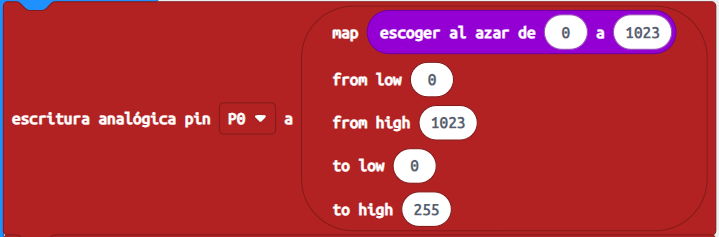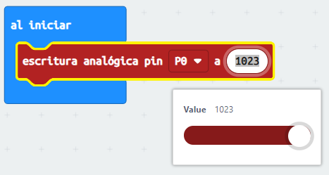 ⚠️ Y aquí surge nuestro segundo problema: el bloque de escritura analógica puede recibir 1024 valores -del 0 al 1023-, pero ¡yo necesito 256 valores -del 0 al 255-!