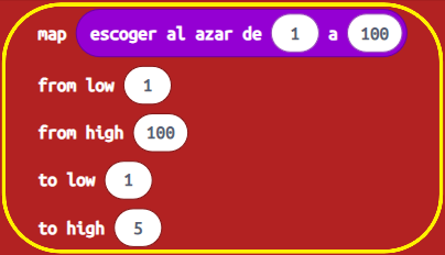 Para estos casos, Makecode nos ofrece un bloque llamado MAP, que se encarga de cambiar de escala de valores.