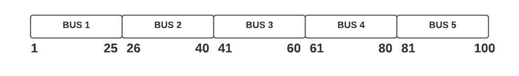Para que lo entiendas: supongamos que estamos organizando un viaje y tenemos que meter a 100 personas en 5 autobuses. Las tenemos que meter de forma aleatoria porque todas quieren ir en el mismo autobús. Metemos en una caja 100 papeletas -del 1 al 100- y les decimos a cada una que coja una papeleta. Si sacan una papeleta entre el 1 y el 25, irán en el primer autobús; si sacan una papeleta entre el 26 y el 40, irán en el segundo autobús; y así sucesivamente hasta que se completen los 5 autobuses: