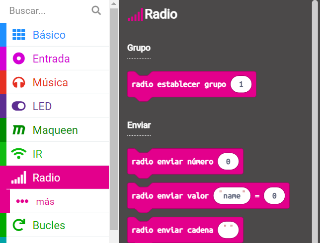 La comunicación entre las dos placas, lo haremos usando los bloques de Radio: