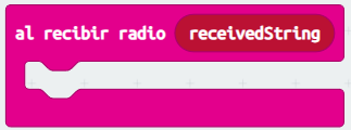 Ten mucha precaución cuando uses la comunicación por radio, porque debes usar el bloque que recibe el mismo tipo de dato que se envió. Si se envió un número, debes usar receivedNumber. En nuestro caso, como se envió una palabra, debemos usar receivedString (cadena de caracteres en inglés).