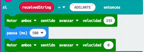 ¿Cómo programamos, por ejemplo, el avance del coche cuando se recibe ADELANTE? Esto es algo que ya sabemos hacerlo, pero hay un pequeño detalle que ayuda a mejorar el comportamiento del coche en este proyecto.
