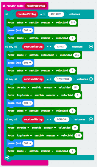 ¿Cómo hacemos para recibir las palabras IZQUIERDA, DERECHA, ADELANTE y ATRAS que envió la emisora?
