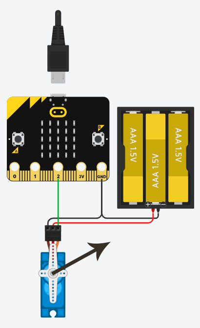 ¿Estás listo para saber cómo fluye la energía desde la Micro:bit hasta el servo motor para hacer que se mueva?