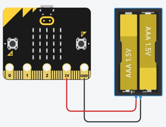 Y no olvides que debes aportar energía al circuito de alguna manera que debes elegir tú: usando el cable USB de la Micro:bit o utilizando un portapilas o una combinación de ambos.