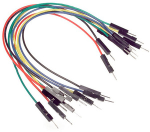 Además, los cables de cocodrilo no los podemos conectar directamente a los pines hembra del conector del servo, así que debemos recurrir a los cables Dupont.