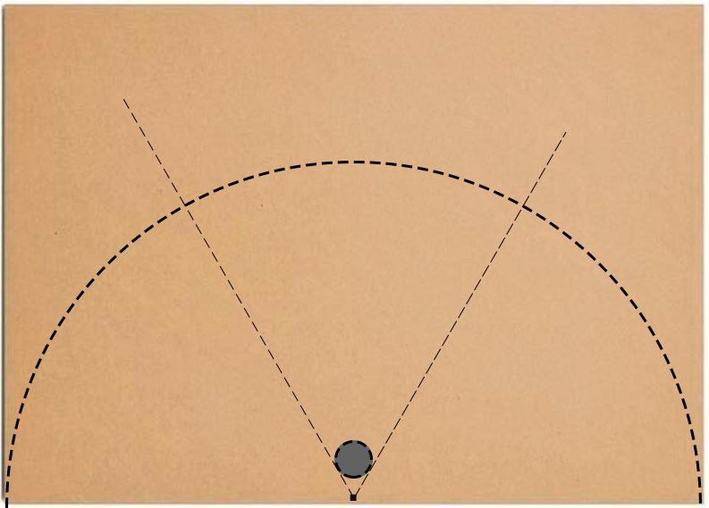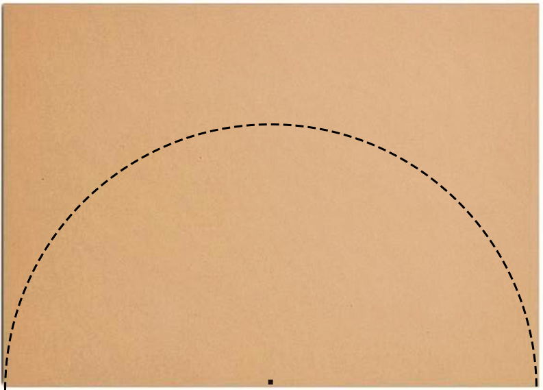 Ahora vamos a marcar sobre el cartón el espacio que ocuparán nuestros niveles de ruido. Para ello, localiza el punto medio del borde inferior del cartón y úsalo como punto central para trazar una circunferencia.