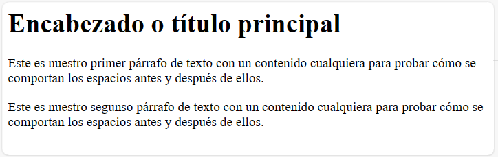 Observa el espacio que se ha creado entre los dos párrafos, porque esa es su principal utilidad: distribuir el texto para que aporten la semántica asociada a párrafos distintos de un mismo documento.