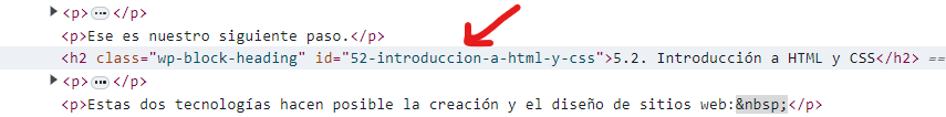 Otro ejemplo: para indicar que un elemento es un subtítulo se utiliza el elemento h2: