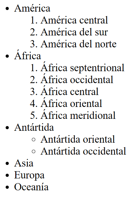 • ul: para crear listas de elementos sin ordenar. La variante ol, crearía una lista ordenada.