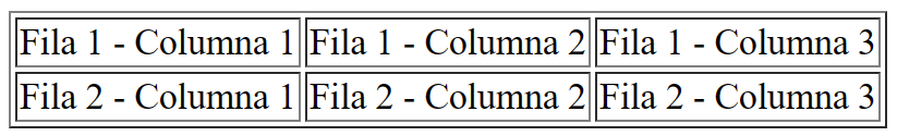 Para indicar que queremos pintar una fila tenemos que escribir las etiquetas <tr> y </tr>, y dentro de ellas tantas etiquetas <td></td> como columnas queramos que tenga esa fila.